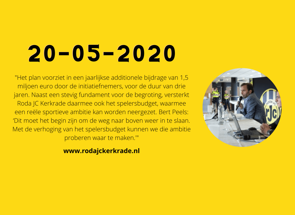 Op 20 mei 2020 viel in De Limburger te lezen dat beursmiljonair Roger Hodenius, ICT-ondernemer Stijn Koster, beleggingsmaatschappij Mercurius en Bert Peels drie jaar lang 1,5 miljoen euro per seizoen in de club zouden steken. Ik was laaiend enthousiast. Vier partijen die gezamenlijk, volgens de Quote500, honderden miljoenen waard zijn én feeling hebben met onze club. Je zou het gerust de natte droom van iedere voetbalsupporter kunnen noemen. De boodschap was: we moeten in ieder geval in de top 5 van de Keuken Kampioen Divisie meedoen en daar zou ook budget voor zijn. Binnen de ambtstermijn van de Phoenix Groep zou uiteindelijk gepromoveerd moeten worden naar de Eredivisie. Dat was het doel. Onze missie maat 2.0.